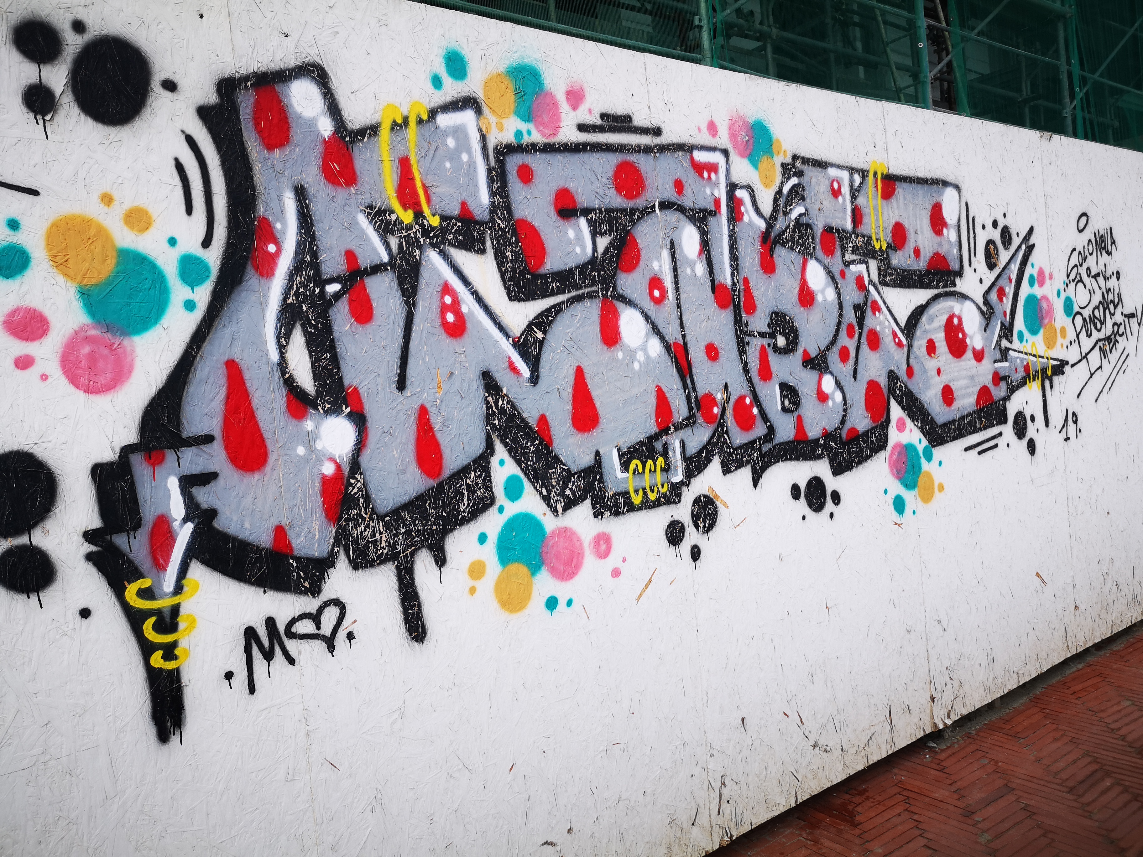 Anche io ho contribuito a dipingere parte del muro dei Segni dal Fuoco, opera creativa collettiva. Potete vedere il video sul mio profilo Instagram.
