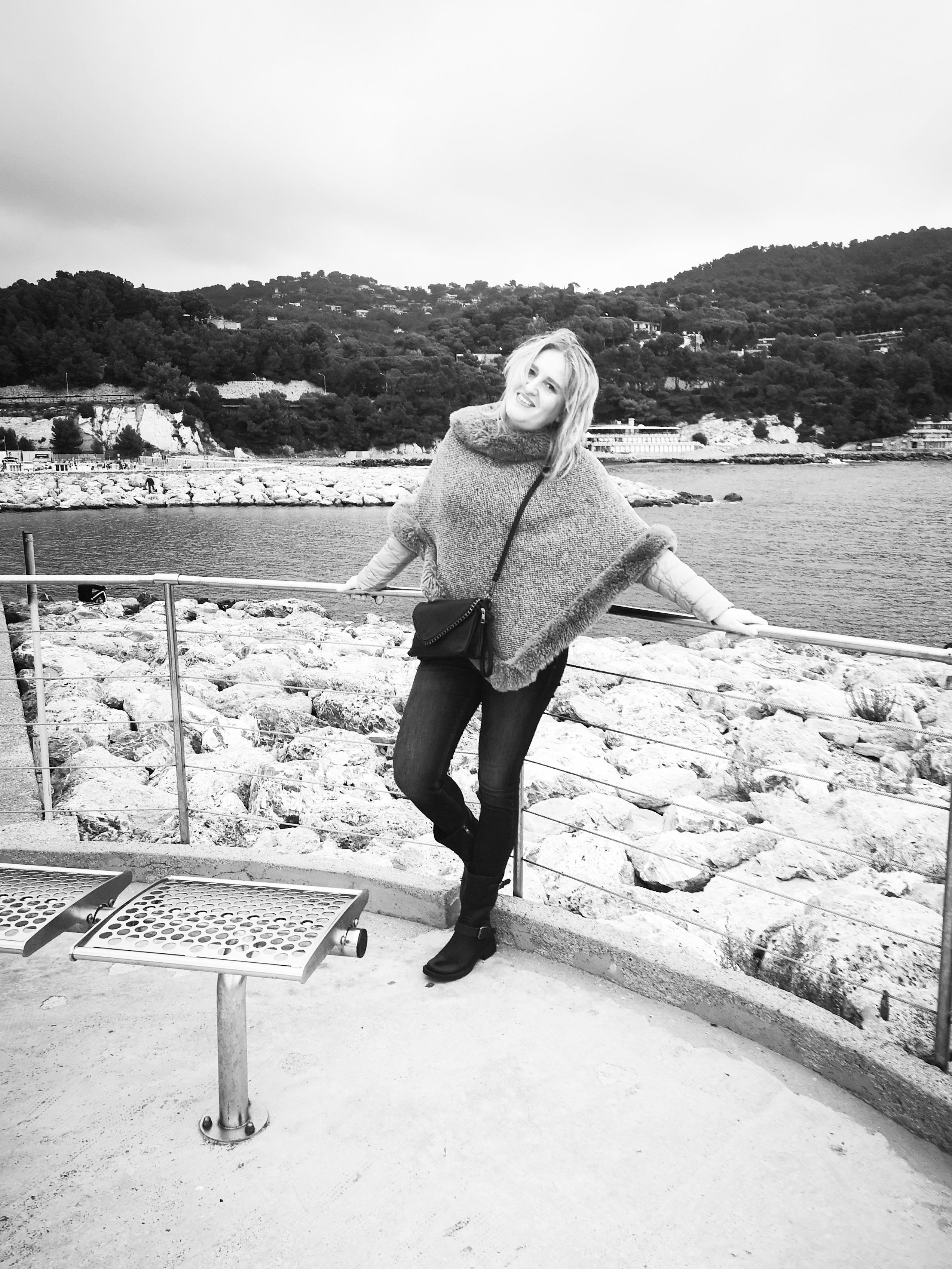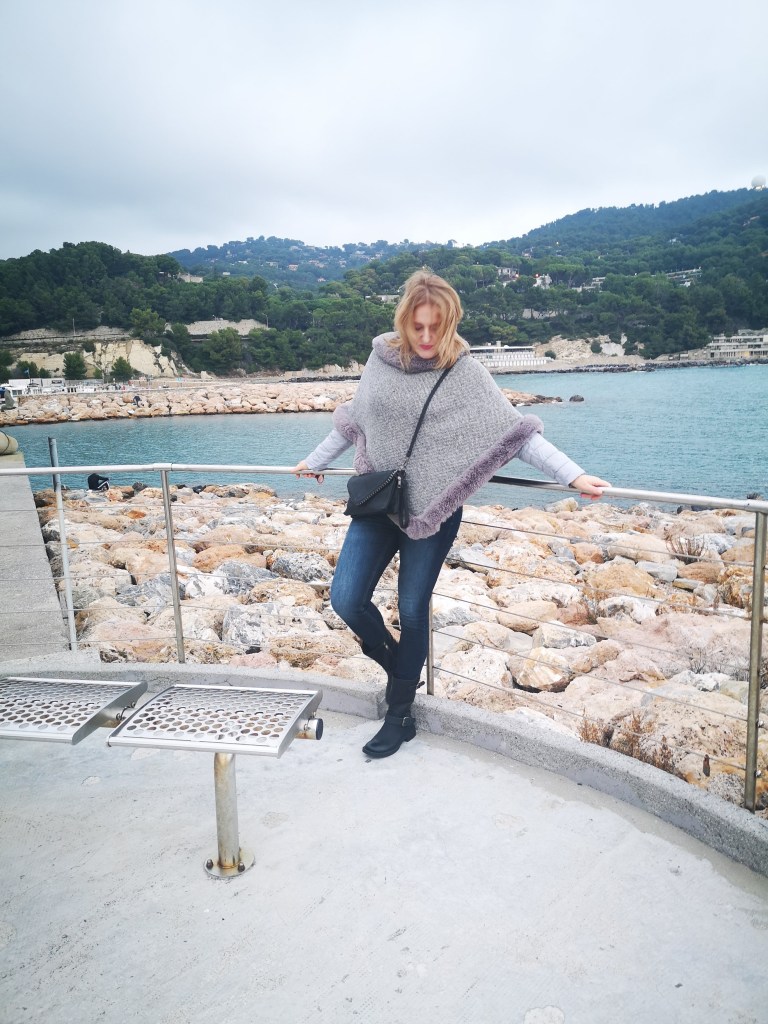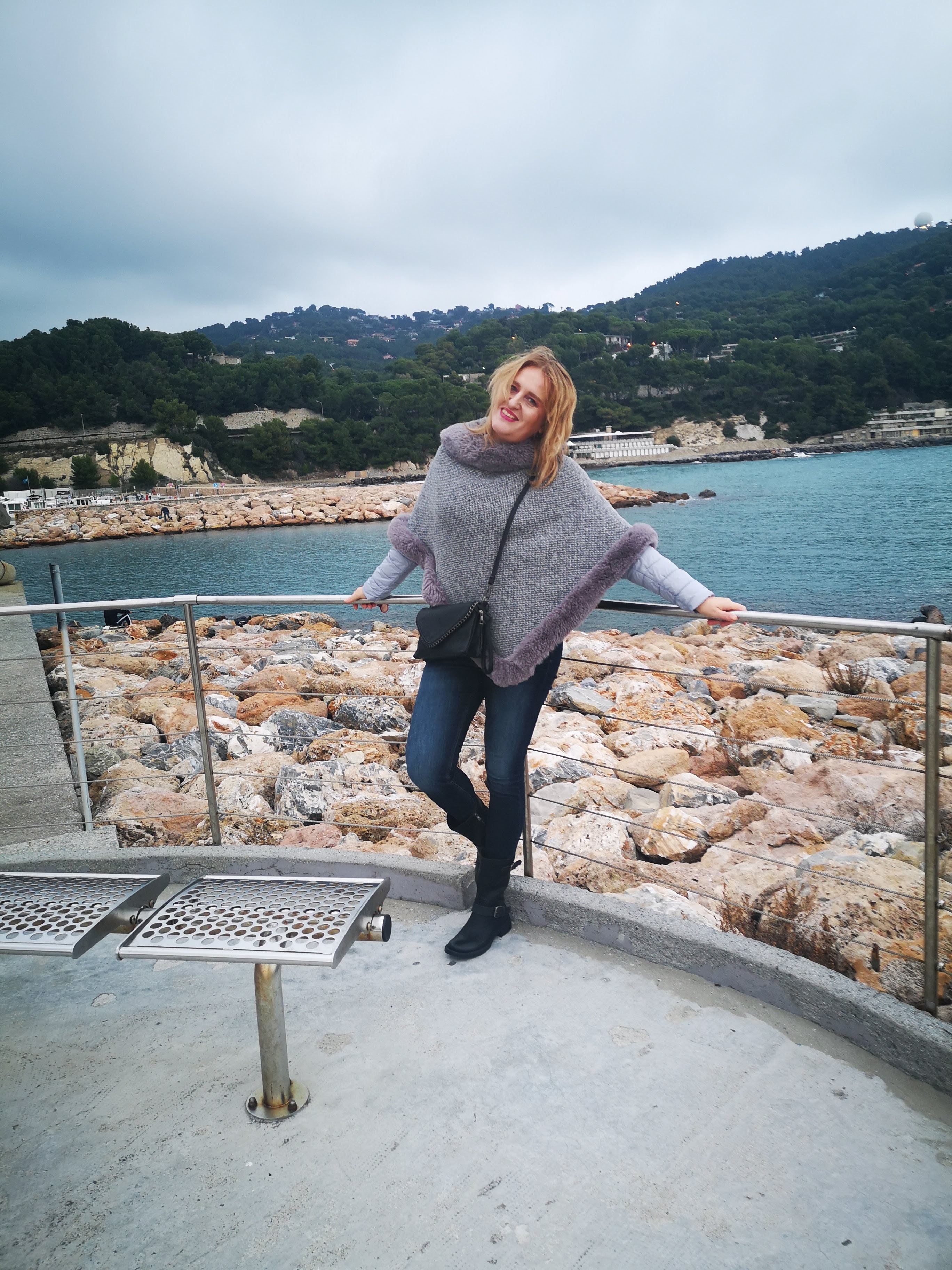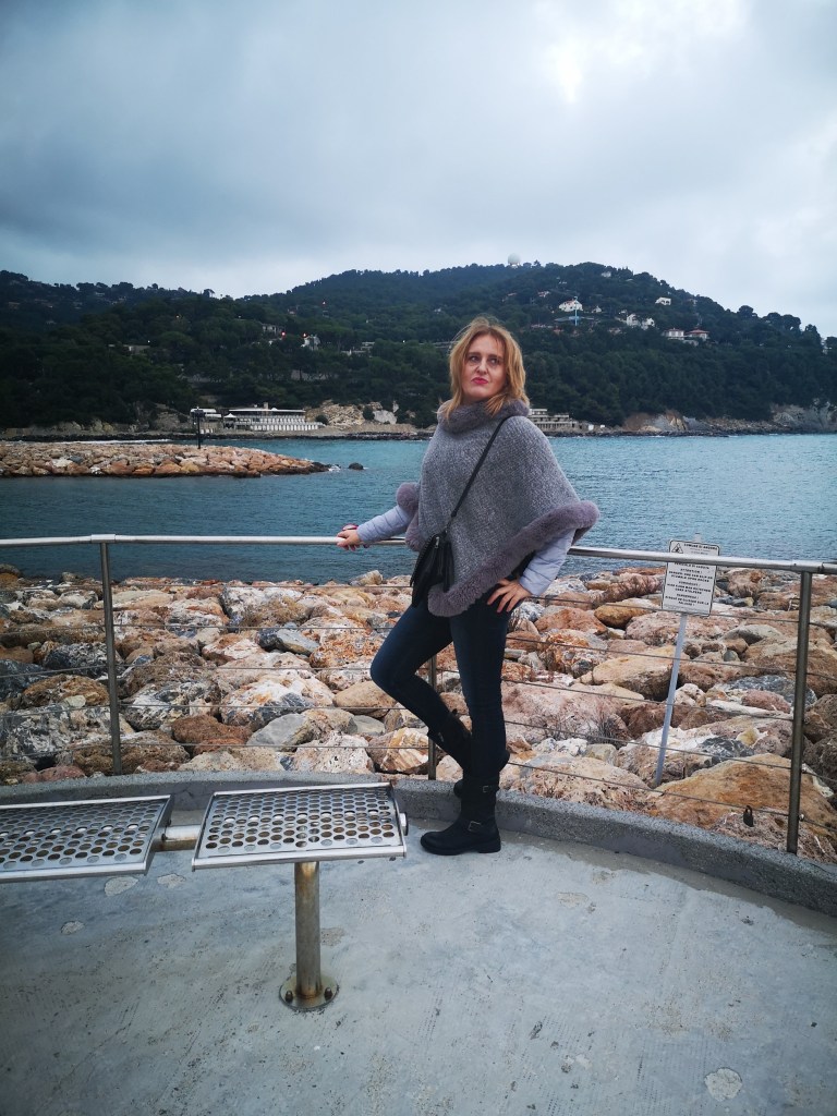 Piumino 100 grammi di colore azzurro cielo, di Neropale, ce l’ho da diversi anni, è perfetto sotto cappotti, mantelle oppure un poncho, come il mio. E’ un capo che ho acquistato per una cifra irrisoria, ma fà veramente una bella figura ed è fatto a dovere: ha l’interno in una similpelliccia coccolosa e i bordi e il collo in similpelliccia grigia, che dà luminosità al viso e tiene calduccio. Preso da Ishuè a Borghetto S.S., all’uscita dell’autostrada. Sotto, jeans skinny blu scuri di Only, brand che conoscevo ma non avevo mai acquistato e devo dire che provandoli me ne sono innamorata. Tessuto morbido che non costringe ma sostenuto allo stesso tempo, li ho ricevuti in uno dei pacchi di Lookiero, servizio di personal shoppers che ogni tanto mi piace utilizzare. Il jeans dentro lo stivale è un’altra tendenza di questo autunno/inverno. A completare, una borsina nera in similpelle dal sapore rock, portabile in tre modi diversi, tracolla, a mano come pochette e con un laccetto. Un pezzo comodo, easy, da portare sempre (anche lei acquistata da Posh | Albenga centro storico.
