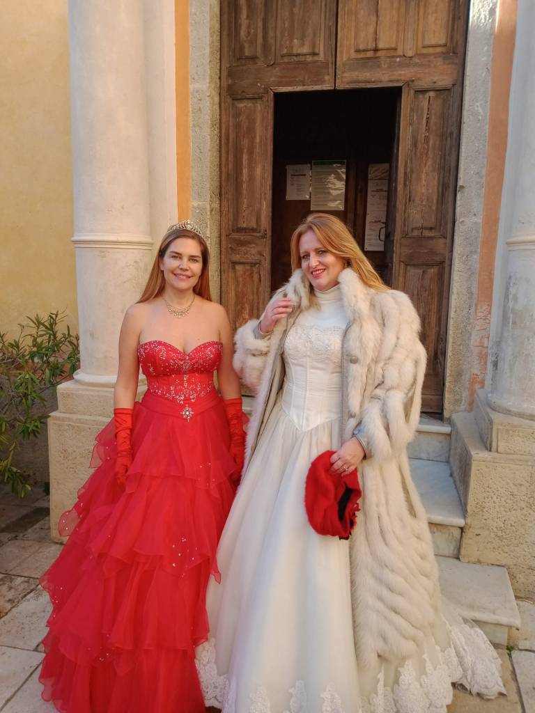 Stupenda in abito rosso (collezione privata Cinzia Balbi) la S.A.S. Nina Principessa di Seborga.